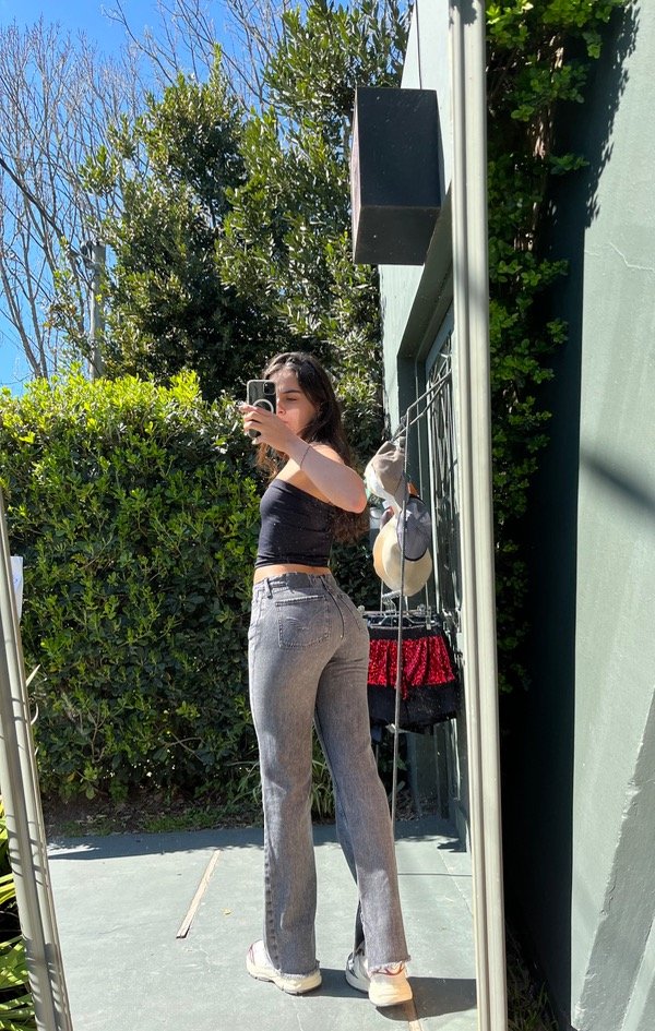 jean tiro medio, con pequeño corte en la parte inferior