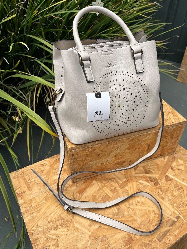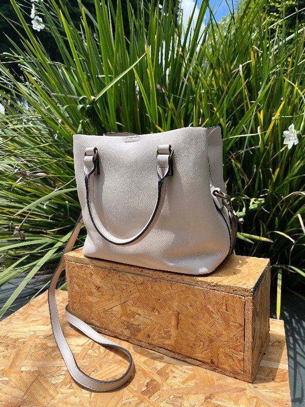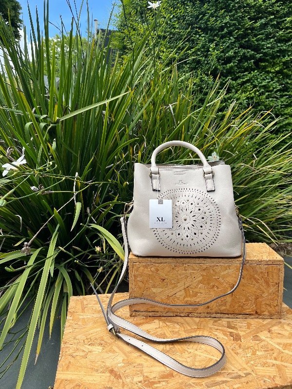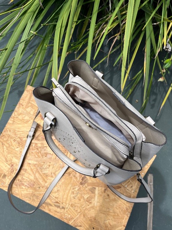 cartera con doble agarre y múltiples bolsillos