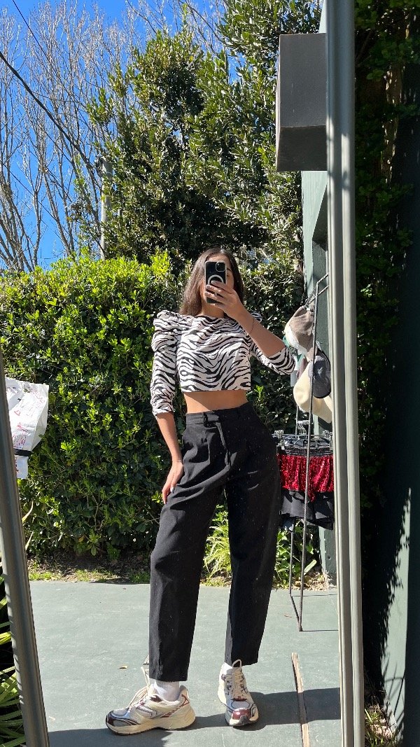 crop top estampado, con manga 3/4 y frunces